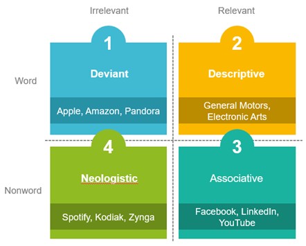 There are four categories of brand names, and our Brand Name Workshop will help you develop and choose a name situated in the defined memorable “fairway” to avoid common naming mistakes.